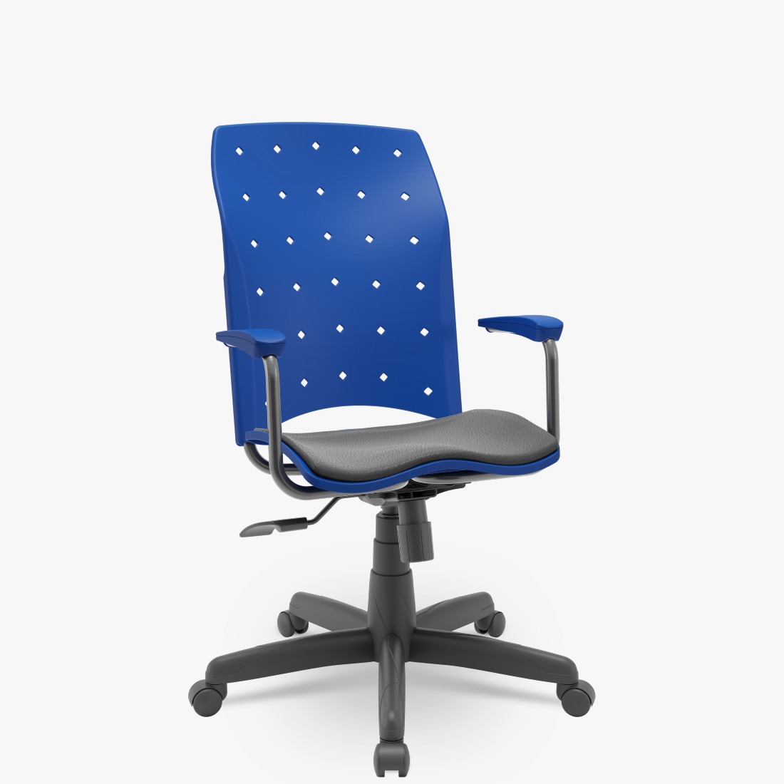A Ergoplax mostra que um design diferenciado inclui detalhes. Seus modelos foram projetados para mesclar cores, materiais e configurações, permitindo composições contemporâneas. O modelo Presidente possui estofado preto no assento, duas opções de cores para assento e encosto e estrutura na cor preta.